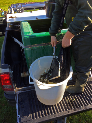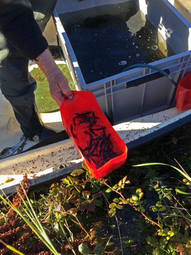 Praktisk udvalg brugte søndag den 6. oktober 2019 på at sætte 35.000 stk lakseyngel ud i Grindsted Å. Laksene blev fordelt ud over strækningen fra broen ved Utoft ned til broen ved Mølbyvej tæt på Ansager.