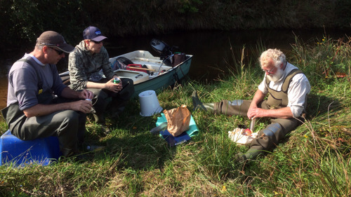 Alle stallinger blev målt og registreret og når overvågningsperioden er til ende engang i foråret, så skal samme strækning elfiskes igen.